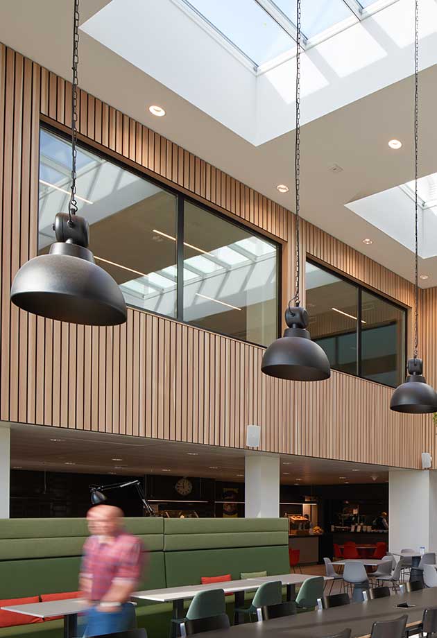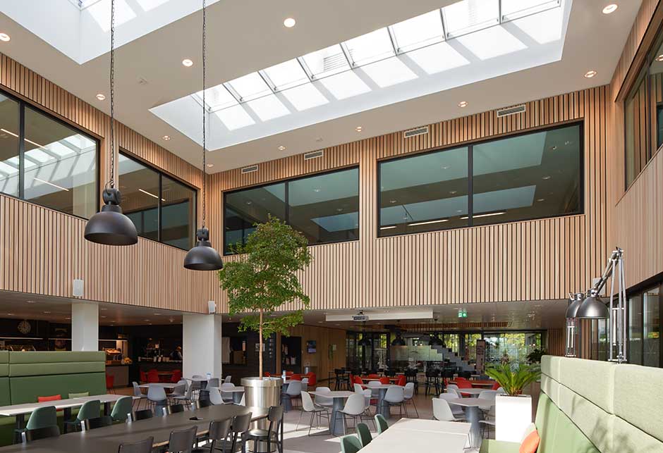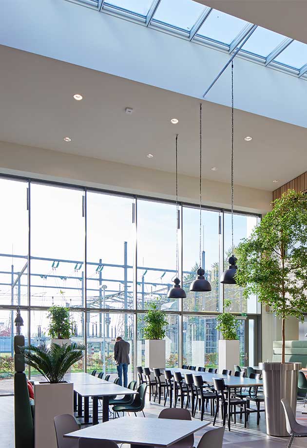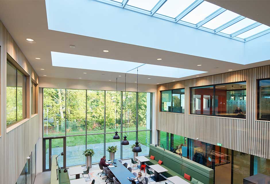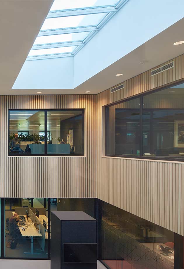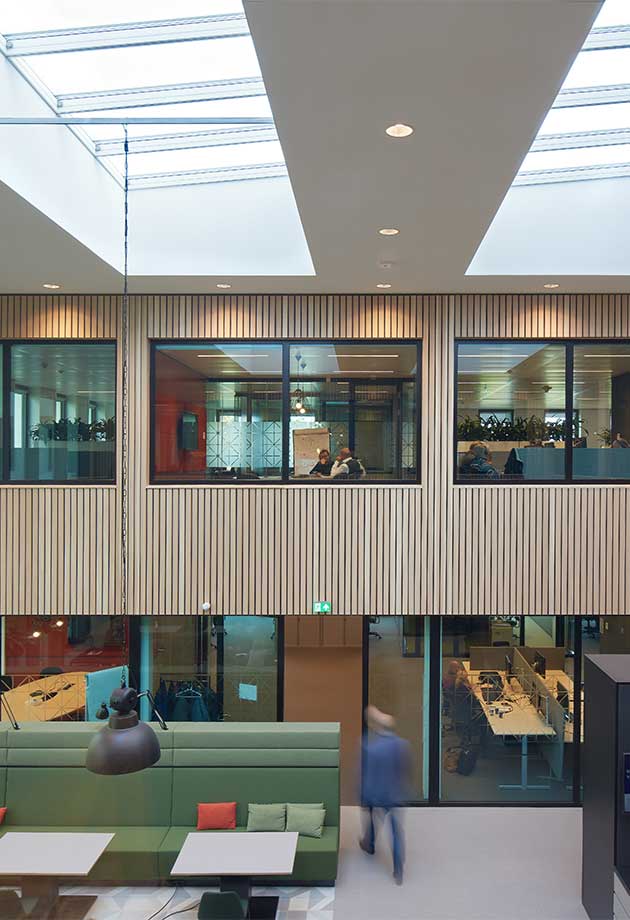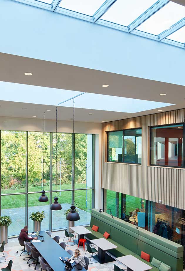 This energy-neutral construction increases the well-being of employees with improved indoor air quality as well as being eco-friendly.