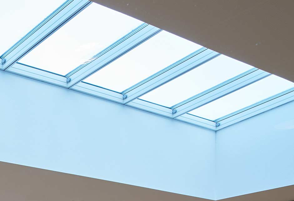 - The shape and positioning of the windows limit direct sunlight around midday during the summer, while providing generous pleasant daylight for working.