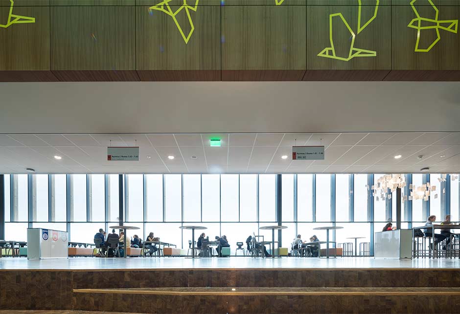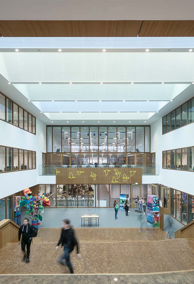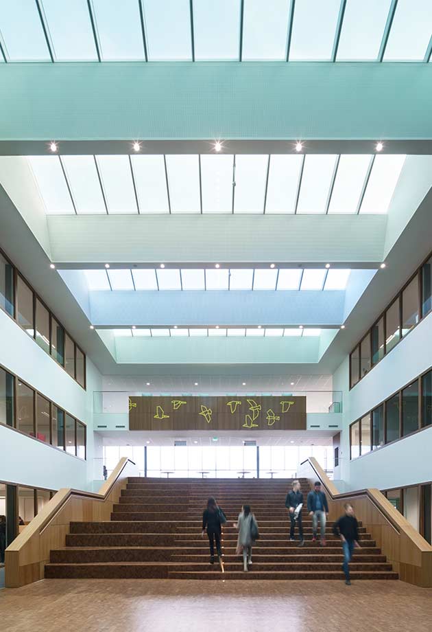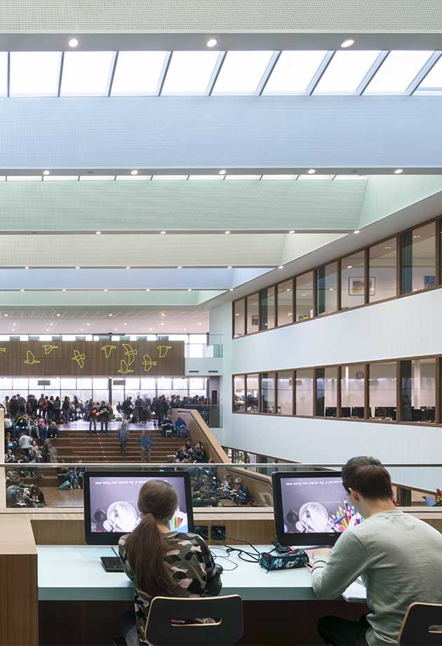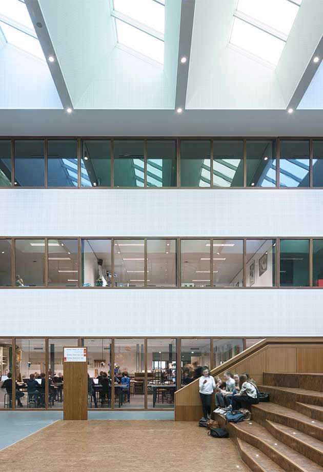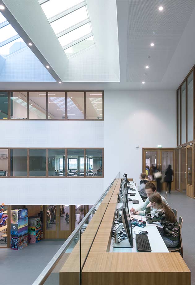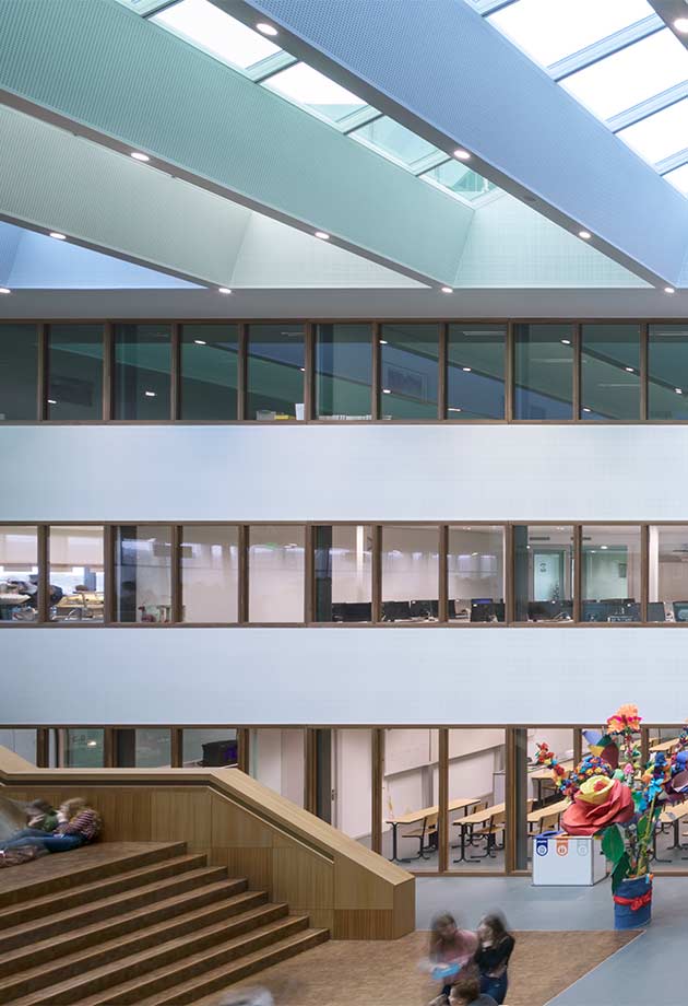 - The classrooms are grouped around a spacious atrium, the lively centre of the school. Six rows of VELUX ridgelights were installed in the atrium to let plenty of daylight into the central hall and the surrounding classrooms.