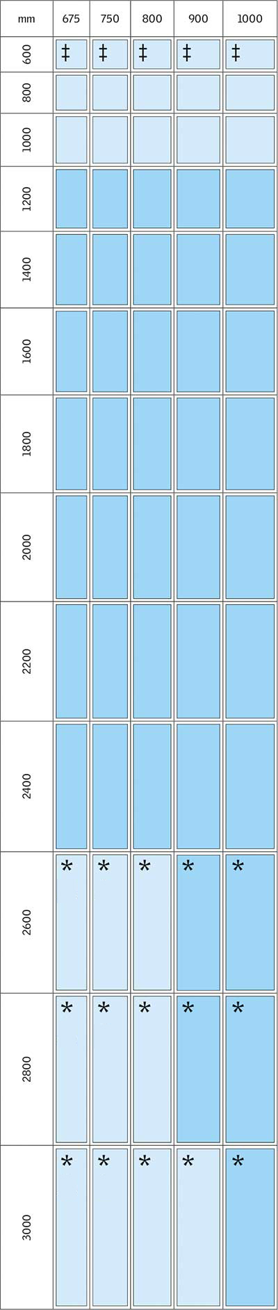 Symbol explanation Standard size Special size, functional limitations may apply * Module height above 2400 mm is delivered with an extra strong glazing unit only. o Only open system actuator available. ‡ Not available for Ridgelight
